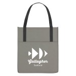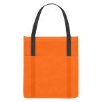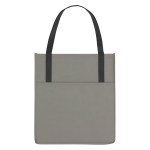 Made Of 80 Gram Non-Woven, Coated Water-Resistant PolypropyleneGreat For Grocery Stores, Markets, Book Stores, Gift Bags, Etc.Front Pocket9 ½” Gusset With Covered Bottom InsertReusableRecyclable20″ HandlesSpot Clean/Air Dry. Complies with Prop 65. 9.5″ D x 13″ W x 14.5″ H