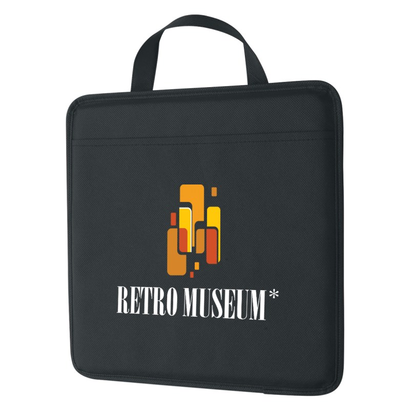 Made Of 80 Gram Non-Woven, Coated Water-Resistant Polypropylene. Front Pocket. Web Carrying Handle. Complies with Prop 65. 0.5″ D x 12.25″ W x 12.25″ H