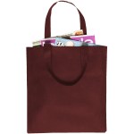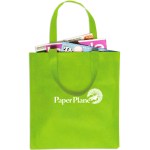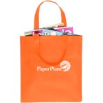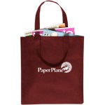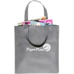 The value tote is constructed of 80 gsm non-woven polypropylene. Tote has 22″ handles for comfortable carrying. 14″ H x 13 1/4″ W