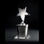 Set atop a base of Optically Perfect glass, this silver metal star is perfect for rewarding your star performers. 3.5″ W x 7.5″ H x 3″ D