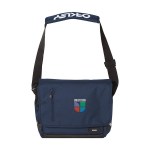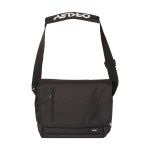 91/9 polyester/PU and 600D messenger bag with 70D ripstop lining. Features a front flap closure with hook and loop closure; padded internal laptop and tablet sleeves; front vertical zipper pocket; inset zipper pocket with organizer panel; external sleeve and strap/buckle for attaching to luggage; adjustable, padded shoulder strap. 15L capacity. 5″ D x 13.5″ H x 15.25″ W