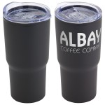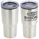 Odyssey 20 oz Stainless Steel/Polypropylene Travel Tumbler features stainless steel outer shell with black polypropylene inner lining, Clear plastic lid with sliding drink opening. Keeps beverages hot or cold for up to 3 hours. Non-slip base pad on bottom and tapered bottom fits cup holders. Hand wash only. BPA Free and FDA certified An economical alternative to our popular Belmont 20 oz. Tumbler. Complies with FDA, Prop 65. 7″ H x 3.25″ Diameter