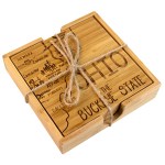 This State Puzzle Coaster Set with Case offers a natural solution for protecting tabletop. These sturdy coasters are crafted from organically-grown Moso® bamboo, an environmentally-friendly material solution that quickly re-grows once harvested. Bamboo is both lightweight & durable a perfect choice for coasters! The coaster set includes a handsome case to store coasters neatly when not in use. The coasters are easy to care for as well: simply wipe them with a damp cloth to clean. Complies with Prop 65. 4″ W x 4″ H