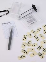 The On-The-Go Dominoes Set is the perfect game to help with passing the time while traveling. The small size makes it easy to pack in any bag or pocket. This set includes 28-piece dominoes, gel ink pen, game scoring cards and instructions, all packed in a transparent carrying case with attached carabiner. 1.30″ D x 3.60″ W x 4.70″ H