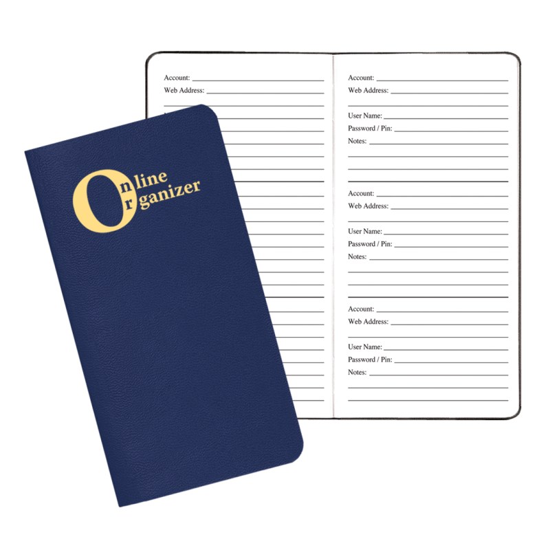 Online Organizer, Keep all your web information organized and on hand. Holds up to 100 web accounts and information. 3 1/2″ W x 6 1/2″ H