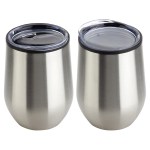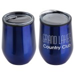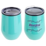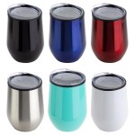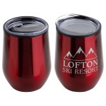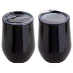 Onyx 12 oz Stainless Steel/Polypropylene Wine Goblet features stainless steel outer with black polypropylene inner lining that keeps beverages hot or cold for up to 3 hours, clear plastic push-on lid with drink opening and non-slip base pad on bottom. Hand wash only. BPA Free and FDA certified. Complies with Prop 65. 4.75″ H x 3.5″ Diameter