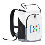 Ultrasonic Welded Seams (Inside Liner Only) Waterproof Fabric Reinforced Waterproof Fabric Large Main Zippered Opening Padded and Ventilated Back Panel 3 External Storage Zippered Compartments. 7.5″ D x 10″ W x 19″ H