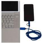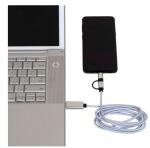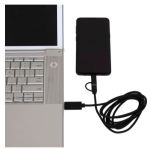 The Extra-long 6-foot Charging cable has dual input charging connectors – standard USB A and USB C — for plugging into power sources and 3 output connectors – USB C, Apple™ and Micro USB — for charging devices using the Apple™ and Android™ operating systems (recommended to charge one device at a time). Apple™ and Android™ are registered trademarks of their respective owners. Black – Back In Stock Mid January. 1 1/4″ W x 5/8″ H