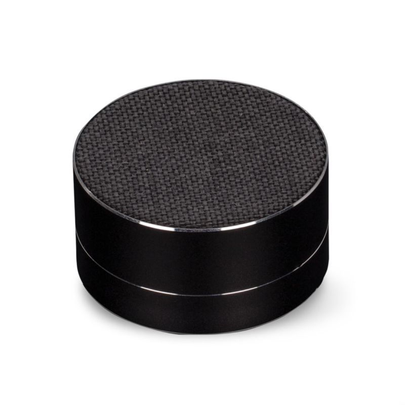 Wireless speaker in metal & fabric weave finish.- Built-in microphone for convenient hands free phone calls.- Micro SD card slot for audio content playback. – Play/Pause, Next/Previous Track & Volume control functions.- Rechargeable 400mAH capacity battery.- Universal wireless technology with minimum range of 10m/33ft.- Compliance: FCC and CE CertifiedProduct Size: 2.75″ x 1.68″. 2.75″ W x 0.68″ H