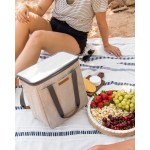 The Out of the Woods(R) Dolphin Cooler combines function and fashion for every outing. Crafted from FSC(R)-Certified washable paper that mimics the look of leather, it features a PEVA heat-sealed lining, extra-thick insulation, and a flat base for easy stacking. Perfect for grocery runs, park picnics, or beach days, this versatile cooler keeps food fresh while offering a chic, sustainable design. Complies with CPSIA, Prop 65. 7.08″ W x 12.79″ H x 12.4″ L