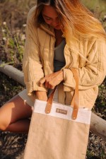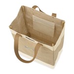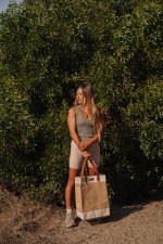 Tall, stylish, durable. The Out of the Woods(R) Jute Tall Tote is crafted from renewable, biodegradable jute with vegan leather handles and rivet reinforcements for lasting strength. Its tall, spacious design fits market finds or daily essentials, while an interior pocket keeps items organized. Cream accents add a refined touch, making it both practical and timeless. PVC free. Complies with CPSIA, Prop 65. 7.87″ W x 17.11″ H x 12.99″ L