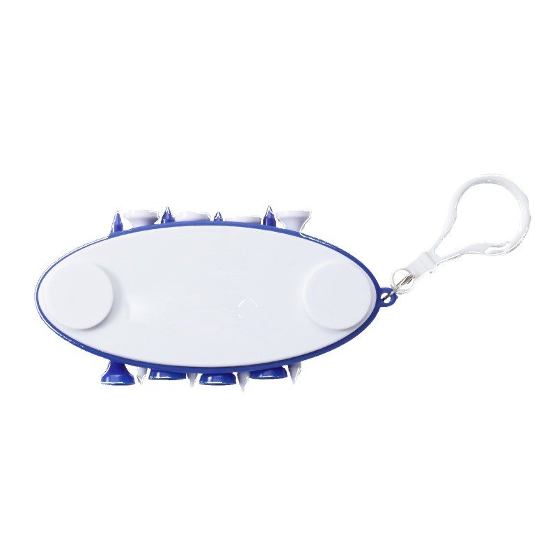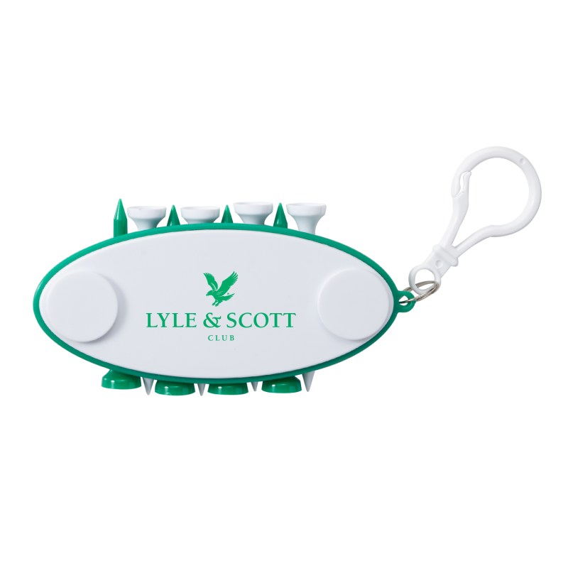 This golf tee carrier includes 2 ball markers and 8 plastic tees that are securely held. It features a carabiner style clip to attach on any golf bag. Ideal for golf courses, golf tournaments, corporate golf outings and pro shops. Complies with Prop 65. 2″ H x 4 1/4″ W