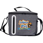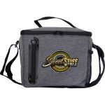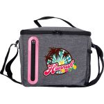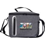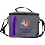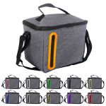 Stay cool and stylish with our insulated zippered cooler featuring a convenient full-top opening. The colorful accent around the front pocket zipper adds a pop of fun. Stay organized with the mesh pocket and easily carry it with the top handle or adjustable shoulder strap. This cooler holds up to 9 12oz cans, making it perfect for any outing. Complies with Prop 65. 9″ L x 6.5″ W x 7.5″ H