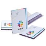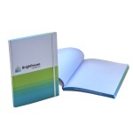 The perfect bound journal features a full color semi-flexible cover and full color custom printing on all edges. This Perfect bound journal comes with soft cover binding scorings for easy opening and a flat elastic closure. You can feature the company’s color, message, or both on the edges of the journal. Complies with Prop 65. 7″ W x 9″ L