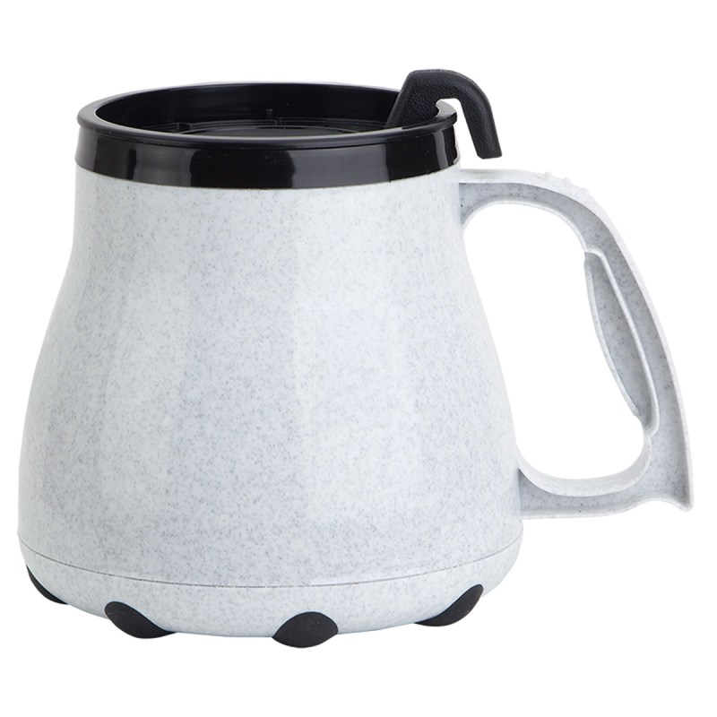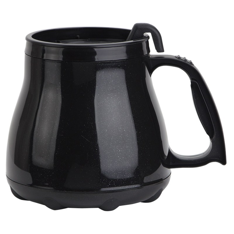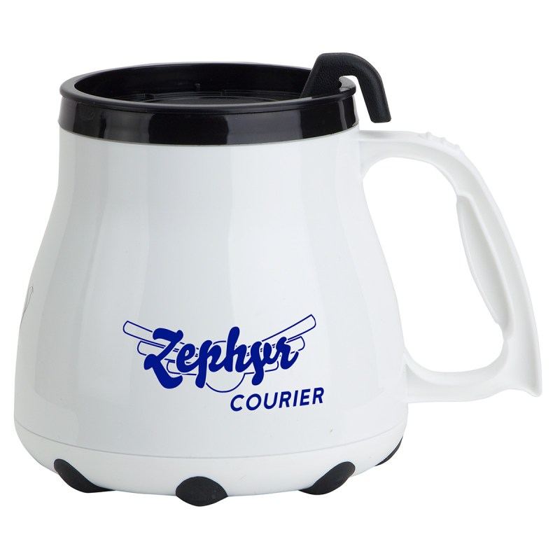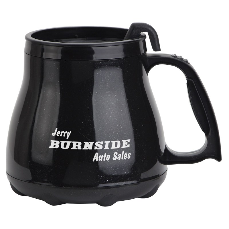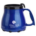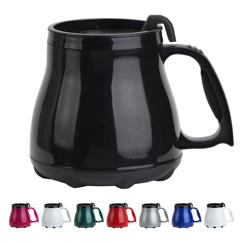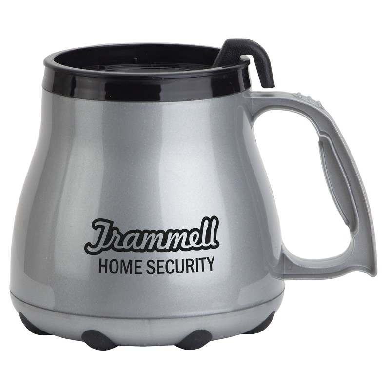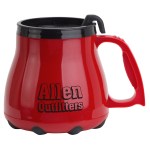 Made in the USA! Palisade 16 oz Desk Mug features double-wall polypropylene construction for insulation of hot or cold beverage, non-skid bottom and wide base design eliminates spills, sip-through thumb-slid lid for convenient opening and closing. Compact size fits nicely in most single serve coffee makers such as Keurig. Microwave and dishwasher safe. BPA Free and FDA certified. Must be ordered in exact case quantities. All lids assembled on drinkware. Complies with FDA, Prop 65. 5.25″ H x 4.5″ Diameter