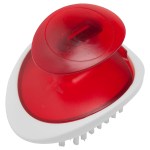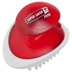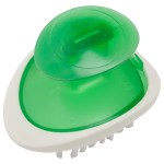 Unique ergonomic design is simple to use. Slide hand between handle & base to easily brush vegetables & fruit until clean. Bank customers and foodies alike will appreciate this trendy gift. 3 1/2″ W x 2 3/8″ H x 2 1/2″ D