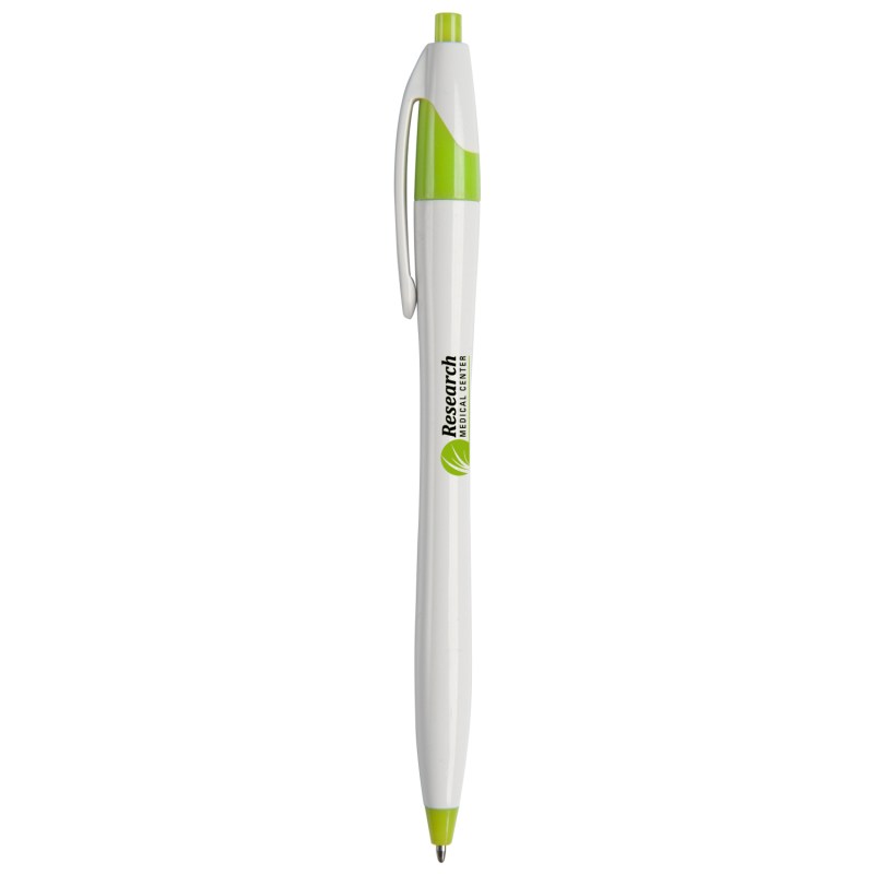 The Pasadena WX pen is an hourglass shape, retractable ballpoint pen. It features a white barrel with colored ferrule, plunger & accent. Complies with Prop 65. 5 3/4″ L x 7/16″ Diameter