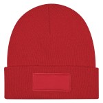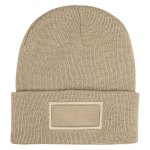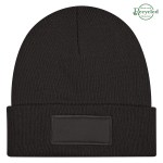 rPET Beanie With 100% Cotton Patch. Made From Post Consumer Recycled Materials. Recycled Polyester (rPET) is Obtained By Melting Down Existing Plastic Bottles And Other Material Sources To Create New Polyester Fiber. Complies with Prop 65.