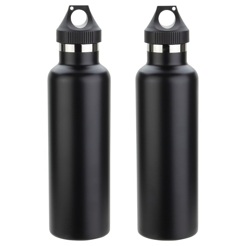 Peak 25 oz Vacuum Insulated Stainless Steel Bottle features 18/8 stainless steel construction, double-wall insulated, keeps beverage hot or cold for up to 12 hours, leak proof screw-on loop cap, loop cap easily attaches to a carabineer or lanyard. Hand wash only. FDA certified. Complies with FDA, Prop 65. 11.375″ H x 3.125″ Diameter