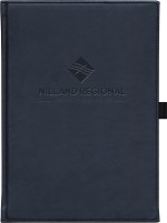 This 7″ x 9.5″ Pedova Planner features smooth, padded, faux-leather covers with thread-sewn book binding and a 12-month, digitally-printed calendar at front (13 sheets). Also contains 125 sheets of lined filler, a black elastic pen loop, and blue and silver satin ribbon bookmarks. Includes a blind deboss imprint up to 16 square inches. Imported book, decorated in the USA. Not available for SureShip. 7″ W x 9.5″ H