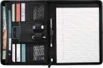 The Pedova™ Zippered Padfolio with FSC® Mix Paper features multiple pockets to help you stay organized, including a gusseted document pocket, a gusseted elastic media pocket, and a slash pocket for added storage. It also features six business card holders, two USB flash drive holders, two mesh ID display windows, and a convenient pen loop. The padfolio has a zippered closure to protect your items and comes with an 11” H x 8.5” W FSC® Mix writing pad. Refill paper is available to order separately (9091-01RF). 1.00″ D x 10.00″ W x 13.00″ H