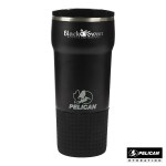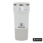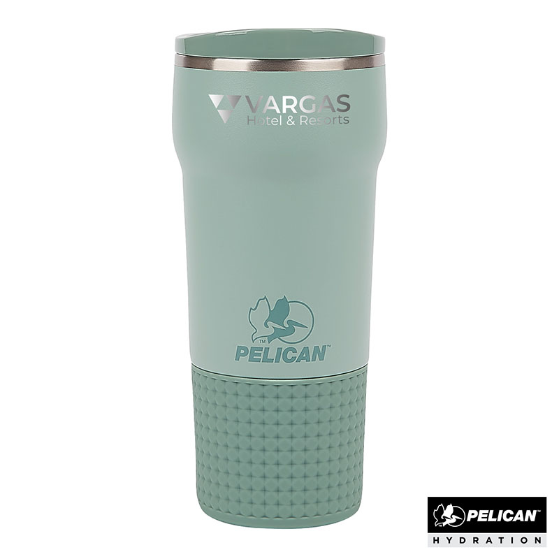 Constructed with food-grade 90% recycled 18/8 stainless steel, the 22 oz. Pelican Cascade Tumbler is not only fashionable in design but sustainable in spirit. Its beautiful two-tone push-on lid with slider closure provides splash-resistant protection and the double wall vacuum insulation with copper lining is designed to keep drinks the perfect temperature for extended periods of time. The removable silicone base delivers a soft comfortable grip and additional scratch and bump protection for t. Complies with Prop 65. 3 5/8″ W x 8 1/4″ H x 3 3/4″ D
