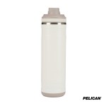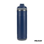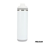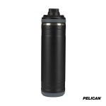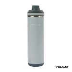 The 26 oz. Pelican Pacific Chug Water Bottle is a stylish and practical choice for staying hydrated during all of lifes adventures, whether at the park, office, in the car, or on the court. With sustainability at its core, this bottle features inner and outer vacuum-sealed walls made from 90% recycled 18/8 stainless steel, while the vacuum insulation and copper lining keep your iced drinks cold for up to 24 hours. The Pelican Pacific Chug boasts a leak-resistant screw-top lid with a chug spout and tethered lid, allowing for easy sipping without the need to fully remove the lid. Its ergonomic T-bar swing handle provides a comfortable grip for carrying on the go and allows for easy attachment to other gear. The removable silicone base adds stability, protection from bumps and scrapes and a soft landing on surfaces and its durable powder-coat finish is scratch resistant and sweat-proof. Designed to fit most car cup holders, this water bottle is both FDA compliant and BPA-free. Complies with Prop 65. 3 1/4″ W x 11″ H x 3 1/2″ D
