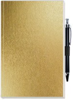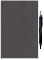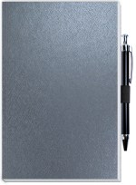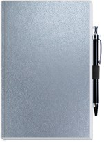 Our Perfect Journal features 100 60 Lb. white offset sheets with light gray rules or graph printed on both sides. Comes Perfect bound on the left side with a black pen patch and a pen. Choose between our flexible, soft leather-like Metro cover or a flexible, textured metallic paper cover. 5″ W x 8″ H