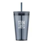 The 560 mL / 22 oz Perfect Storm is a single wall impact resistant tumbler made from BPA-free Eastman TRITAN copolyester. It features a translucent matte rubberized finish with a leakproof threaded lid and TRITAN straw. 3.7400″ L x 6.5400″ W x 2.6400″ H