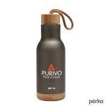 Gift the Perka Altair 17 oz. Double Wall, Stainless Steel Water Bottle to your customers or coworkers. Its vacuum seal and copper lining will keep your coffee hot for 12 hours and your water cold for 24 hours. This bottle has a modern look with a bamboo base and lid, and a braided cotton carry handle. Take the Altair to the gym, to work and on your travels. It fits in most car cup holders and is FDA compliant and BPA free. A portion of all proceeds is donated to Shelter to Soldier, a non-profit organization that rescues dogs to train as service animals for veterans in need. Complies with Prop 65. 3 1/8″ W x 9″ H x 3 1/8″ D