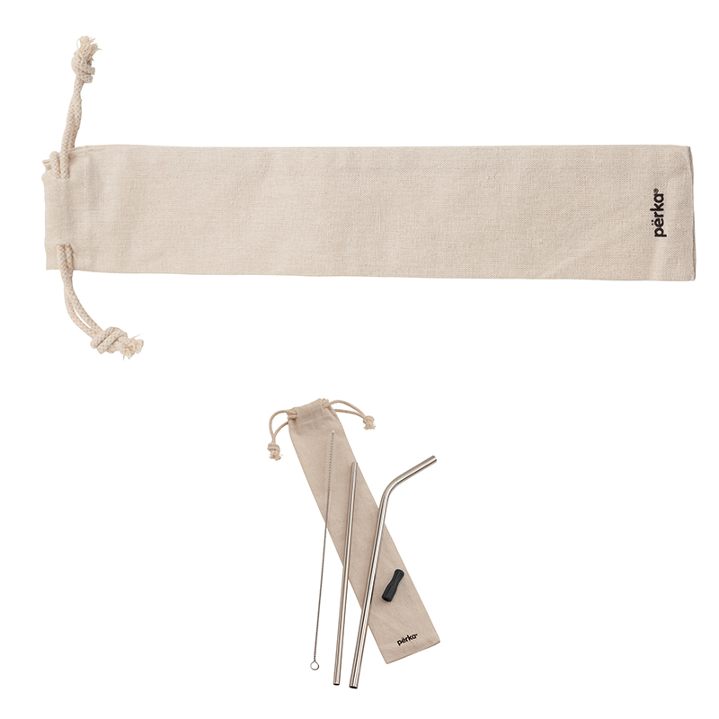 The Perka Avila 5 piece stainless steel straw set includes a 6oz. cotton drawstring carry pouch, a cleaning brush, 2 stainless steel straws (straight straw, 9 1/16″; bent straw, 9 7/8″) and a silicone tip for the straight straw. This set makes for a timely gift on its own or together with a drinkware order. A portion of all proceeds is donated to Shelter to Soldier, a non-profit organization that rescues dogs to train as service animals for veterans in need. Complies with Prop 65. 2 5/16″ W x 9 7/16″ H x 5/16″ D