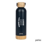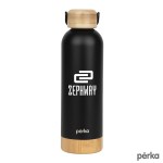 The Perka Dresden Water Bottle is a perfect drinkware piece that suits your hydration needs and your natural sensibilities. It has a double wall stainless steel vacuum insulated construction that keeps drinks hot for 12 hours and cold for 24 hours, and a natural bamboo lid and base. The bottle’s sleek profile is easy to hold and will fit in most car cup holders and it’s easy to bring with you using its swing carry handle. Leave behind plastic water bottles and switch to a reusable insulated water bottle that is FDA compliant and BPA Free. A portion of all proceeds is donated to Shelter to Soldier, a non-profit organization that rescues dogs to train as service animals for veterans in need. Complies with Prop 65. 3″ W x 9 3/4″ H x 3″ D