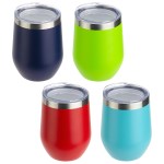 Pero 12 oz Copper-lined Powder-Coated Insulated Goblet features double-wall insulated copper-lined stainless steel construction with a powder coated finish that keeps beverage hot or cold for up to 6 hours and clear plastic push-on lid. Hand wash only. Item should not be put in the microwave or freezer. Must be ordered in exact case quantities, Lime color 48pcs/case, other colors 50pcs/case. Orders may ship from CA location. BPA Free and FDA certified. . Complies with FDA, Prop 65. 4.625″ H x 3.5″ Diameter