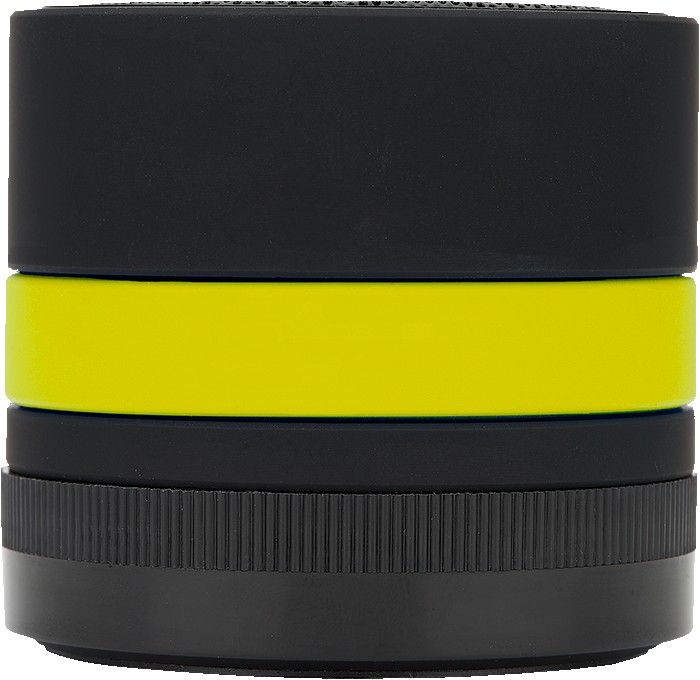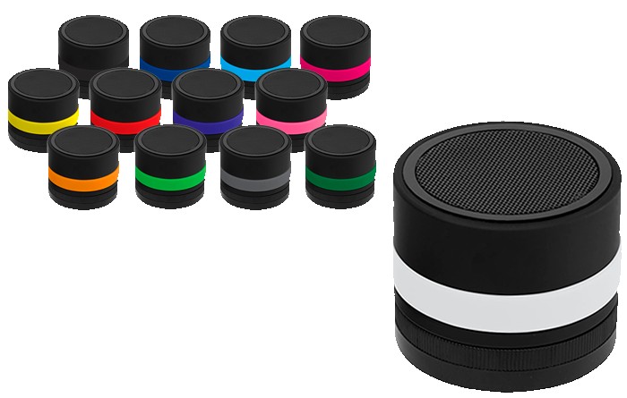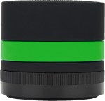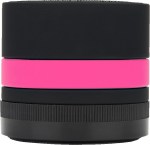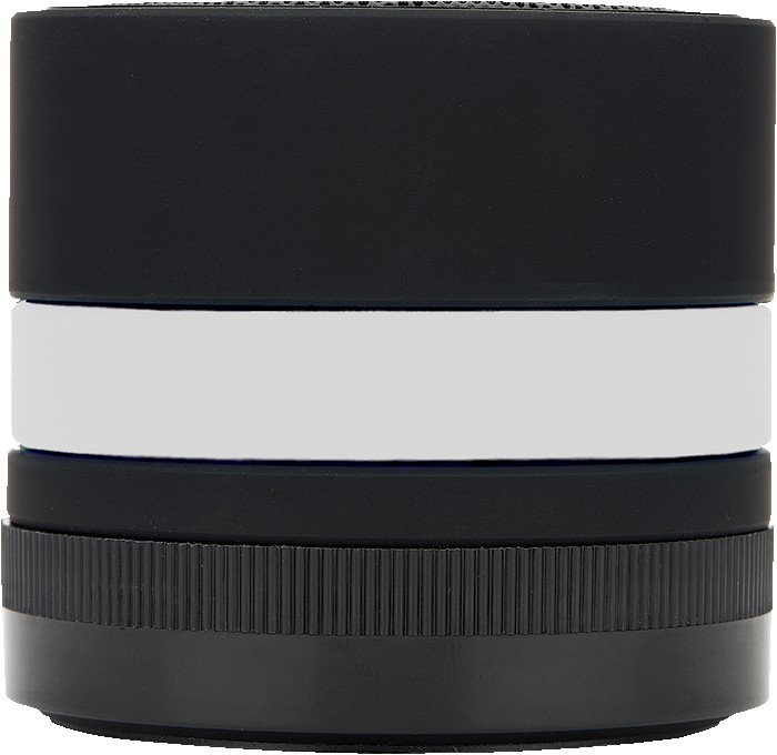 An easy to connect 3 Watt speaker using Bluetooth® V2.1 EDR and supports wired media devices with a 3.5Mm plug. Includes micro/USB cable, audio cable and built-in micro SD card slot. Volume can also be controlled with a twist of the base of the speaker. Features a built-in FM radio and 4 easy to use buttons on the base of the speaker, has an operating range of 10M/33′, and Mini/USB cable acts as the antennae for radio. Complies with Prop 65. 2.375″ D x 2.375″ W x 2.25″ H