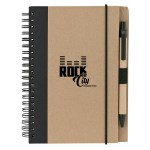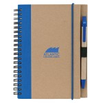 Spiral bound 70-page notebook with paper cover and ballpoint pen barrel and 5″ x 7″ lined paper. Complies with Prop 65. 5 1/2″ W x 7 1/8″ H x 5/8″ D