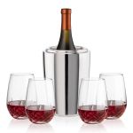 The Pescara Wine Cooler & Wine Glass Set is a refined pairing designed for effortless elegance and enjoyment. The sleek stainless steel Pescara cooler keeps your wine perfectly chilled, while the accompanying crystal-clear stemmed glasses showcase each pour with brilliance and style. Perfect for entertaining, gifting, or elevating your own collection, this set combines modern sophistication with timeless appeal. Various wine glass styles are available.
