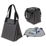 Elevate lunchtime convenience with our 600D polyester lunch bag that converts into a table mat! Durable and stylish, it boasts a foam-lined PEVA interior for top-notch insulation. Pull the hook-and-loop stripes to create a 23″ x 23″ table mat. Then put it back together into a square or triangle and close it with the hook-and-loop closure flap. Features dual 16″ reinforced carry handles. Perfect for work, school, or picnics. Complies with FDA, Prop 65. 8″ L x 7.5″ W x 10″ H