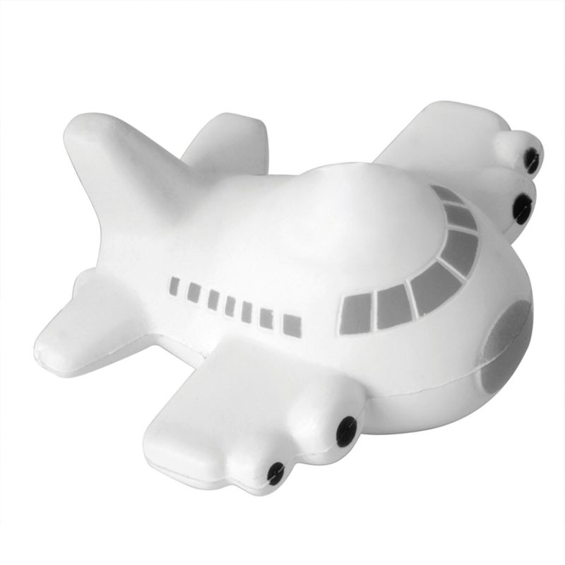 Airplane shape stress reliever. This product is not a toy and is not safe for use by children under 3 or pets. Please note: Each stress item is handcrafted and may vary in size and shape. 100% consistent imprint and PMS matches cannot be guaranteed. Ink will fade with use and base material may bleed through imprint. 3.625″ W x 3.375″ H x 1.875″ D