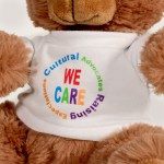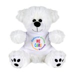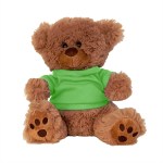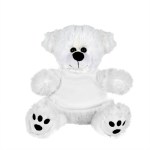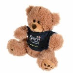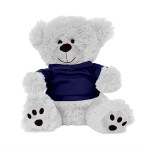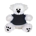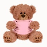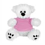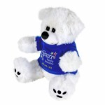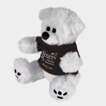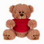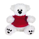 Plush bear available in brown or white. Plush Bear with T-Shirt. Cuddly soft plush teddy bear with t-shirt. Please specify shirt color when ordering, 8 W x 8 H when sitting. Not for children under the age of 3 years. 8.0″ W x 8.0″ H x 5.0″ D