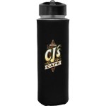 Introducing our 22 oz. glass water bottle, perfect for staying hydrated on the go! This refillable bottle features a vibrant foam sleeve grip to prevent slipping and add a pop of color to your day. The convenient pop-up straw and easy carry handle make it a breeze to stay hydrated throughout your busy day. Plus, rest assured knowing this bottle is BPA free, keeping you safe from harmful chemicals. Please note, this bottle is not recommended for use in the dishwasher or microwave. Stay stylish and hydrated with our sleek and practical glass water bottle! Complies with FDA, Prop 65. 3″ D x 9.5″ H
