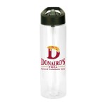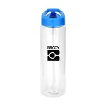 Introducing our eco-friendly 24 oz. refillable water bottle, crafted from recycled PET materials for a sustainable choice. This sleek bottle features a convenient pop-up straw and an easy-carry handle for on-the-go hydration. Rest assured, it is BPA free for your peace of mind. Please note, this bottle is not recommended for dishwasher or microwave use to ensure longevity. Choose our refillable water bottle for a stylish and eco-conscious hydration solution. Complies with FDA, Prop 65. 2.75″ D x 9.25″ H