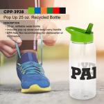 Stay hydrated on-the-go with our 25 oz. eco-friendly water bottle! Crafted from recycled PET materials, this refillable bottle features a convenient pop-up straw and an easy-carry handle for effortless portability. Rest assured, our BPA-Free design ensures your safety and peace of mind. Please note, this bottle is not suitable for dishwasher or microwave use. Choose sustainability with our stylish and practical water bottle! Complies with Prop 65. 3″ D x 8.5″ H
