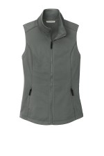 A smooth face, brushed back and coverstitching make this warm fleece vest a classier alternative to more casual fleece. Can be zipped in and secured by snap attachment inside an outer Collective, layer, 5.9-ounce, 100% polyester fleece, Dyed-to-match and contrast coverstitch, Slightly longer length, Ruching at collar, Molded center front zipper, Front reverse-coil zippered pockets, Tulip hem. Complies with Prop 65.