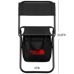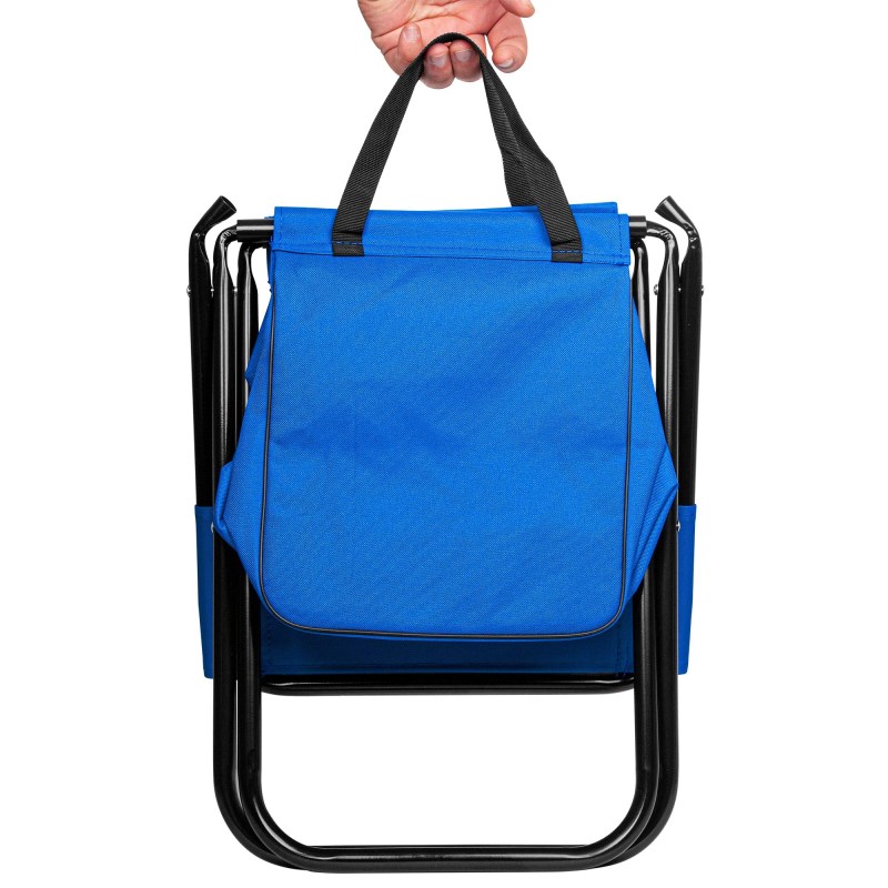 Comfortably supports 250 pounds. Made of tough 600D polyester material and steel piping. Folds up for easy carrying. Large storage compartment beneath the seat is great for storing snacks, tools, emergency kits, fishing tackle and more. 13 12″ L x 14″ W x 23 1/4″ H