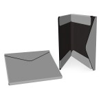 Portfolio style pocket folder with snap or velcro closure for letter size collateral. 2 pockets, each 0.375″. Tribeca Portfolio. Complies with FSC, Prop 65. 12.5″ L x 10″ W x 0.75″ D