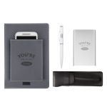 The Power Up Onboarding Set is designed to keep new hires fully charged and ready to go. It includes a sleek Slim Power Bank, the stylish Eccolo® Austin Journal, a dual-function Ballpoint Pen & Stylus, and a sophisticated Leatherette Pen Pouch. Perfect for industries like tech, finance, consulting, sales, and corporate offices, this set delivers the tools and power professionals need to hit the ground running.