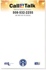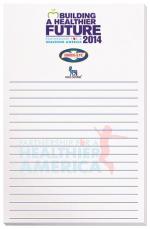 This note pad features 60 Lb. white offset paper stock with a chipboard back. Bleed on all sides is included. 5″ W x 8″ H