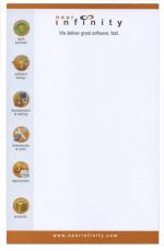 This note pad features 60 Lb. white offset paper stock with a chipboard back. Bleed on all sides is included. 5″ W x 8″ H