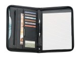 The Presidential Padfolio with FSCr Mix Paper features a zippered cover and includes a refillable, 30 ruled page 8.5” x 11.5” FSCr Mix notepad. It also has a front open document pocket. The interior includes an expanding pocket, a document pocket and an additional zippered pocket. The padfolio includes a pen loop. Pen not included. 1.38″ D x 10.00″ W x 13.50″ H