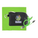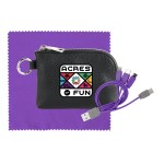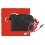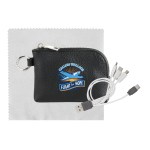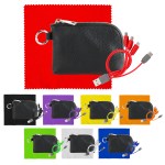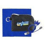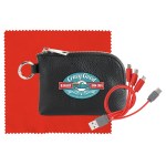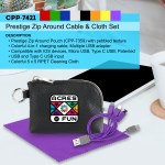 Elevate your accessories collection with the luxurious Prestige Zip Around Pouch boasting a sophisticated pebbled texture. This stylish pouch comes equipped with a vibrant 4-in-1 charging cable featuring multiple USB adapters, making it compatible with IOS devices, Micro USB, and Type C USB – all backed by a patented design for guaranteed quality. The pouch also features convenient USB and Type C USB inputs for seamless connectivity. As a bonus, receive a colorful 5 x 5 RPET Cleaning Cloth to keep your devices looking pristine. Experience the ultimate in style and functionality with this premium accessory set. Complies with CE, Prop 65. 5.4″ L x 3.8″ H